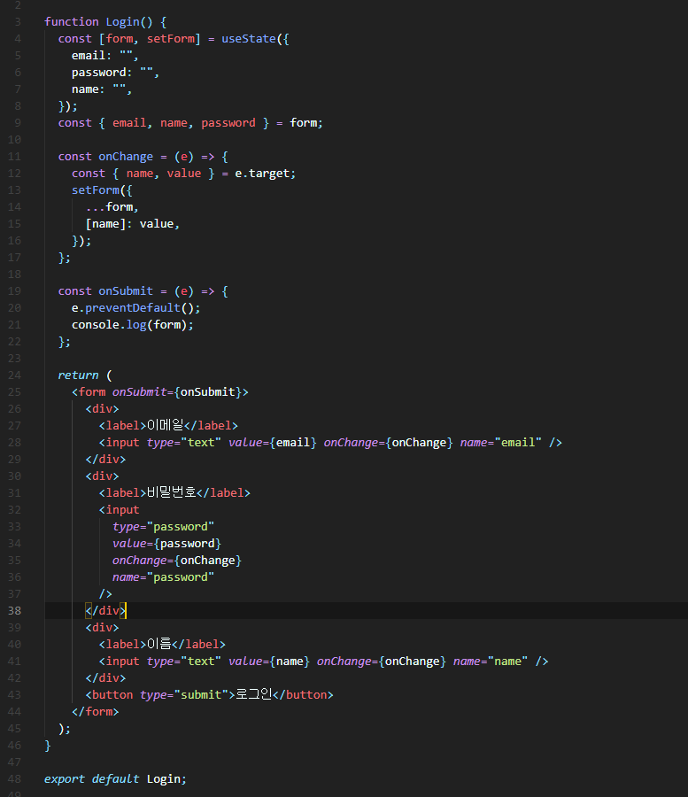 하나의 컴포넌트에서 로직과 UI를 담당하는 형태의 코드는 아래와 같다.