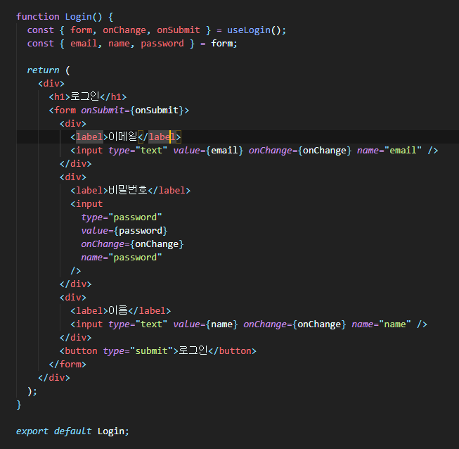custom hooks 패턴은 기존 presentation, container 패턴에서 로직을 hooks로 관리하는걸 말한다. 기존 container에서는 공통 로직이 발생했을 때 다른 container 컴포넌트로 로직을 넘겨주지 못했는데, hooks로 로직을 관리하게 되면, UI 재사용을 넘어서 로직까지 재사용이 가능해진다. 위에서 작성한 Login 로직을 hooks로 분리하면 아래와 같다.