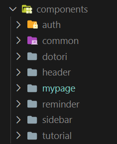 내가 그동안 진행했던 프로젝트에서는 components 폴더 내부에 각 도메인 별로 (auth, post, tutorial, mypage) 폴더를 만든 뒤에 해당 도메인에서 사용되는 component들을 넣어놓고, 공통으로 사용되는 component들은 components/common 폴더에 넣어놓고 사용했었다.