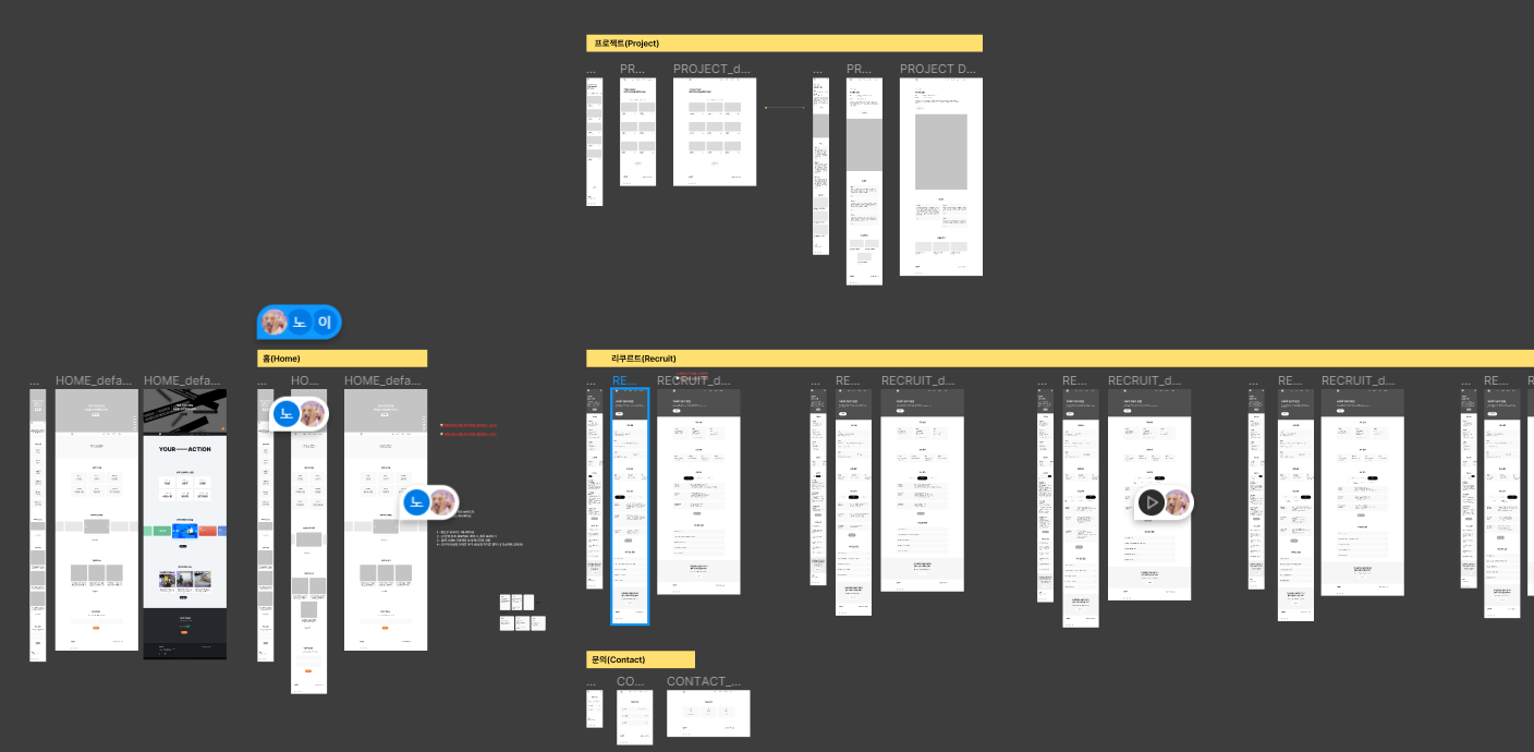 Landing 페이지 > Recruit 페이지 > Contact 페이지 > Project 페이지